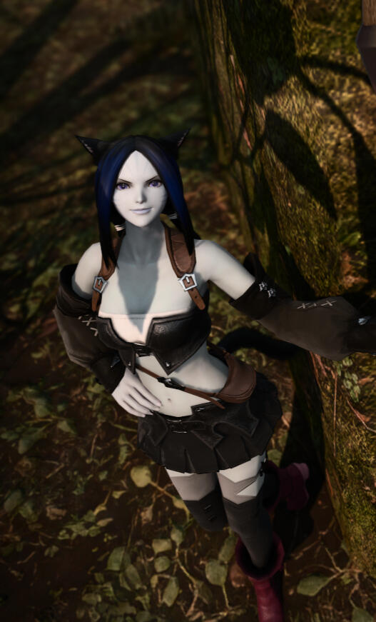 Era's later when the cities seals had fallen a certain WoL on a mission to clear out the now un hidden city found this strange miqote in the more inner areas unconscious. He and his friends of course rescued her, defeated the voidsent Diablo and brought her back to the scions for aid.She awoke with their help but her memories were in tatters... she could barely remember her (the original bodies) name Ellehazdra. She would be haunted by nightmares and flashes of memories over time piecing together roughly what she was and had done... this almost ruined her and to top it all off her body seemed to no longer age so she was stuck with this burden. The scions helped her thru this time with the WoL becoming her best friend and a rock to support her. She in turn turned her focus to helping her new friends and while the body's original owner was not a WoL or skilled in combat the main soul of the voidsent had been a WoL of the thirteenth, a talented one born who was born too late to stop the ultimate destruction of her shard and doomed to turn into what she had fought against. Thus she progressed quickly in all combat arts she picked up and was soon aiding her friends in their endeavors one of which would finally put the original soul of Ellehazdra to rest.Upon accompanying the WoL aboard an ancient Mhaching Airship called the Void Ark they discovered Echidna, the voidsent who contained what was left of that lost miqote. There was no trace of that girl left however, she had fully become what she had hated, losing all memories of her past life and devouring many a more voidsent to grow strong. With a heavy heart Ellehazdra aided in putting the tortured soul to rest, releasing her from the foul chains she had damned her so many eras ago and as her fell body faded she fell to her knees sobbing both for what she had done and for the release of that poor soul.